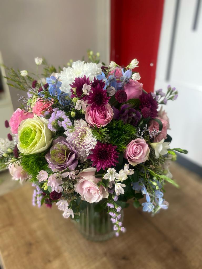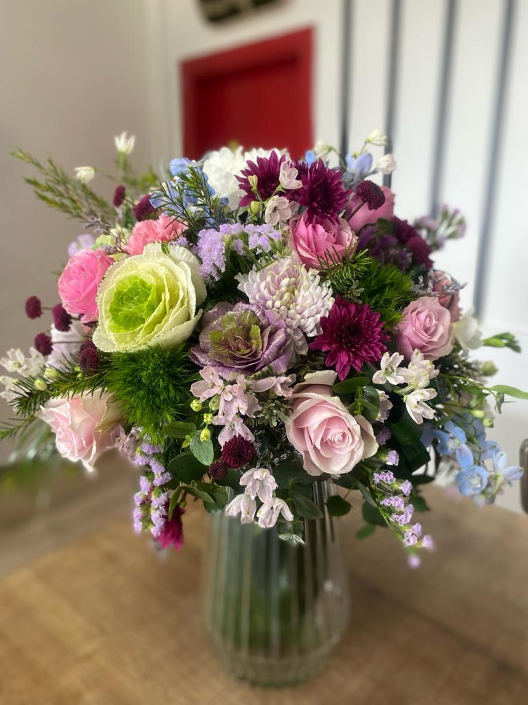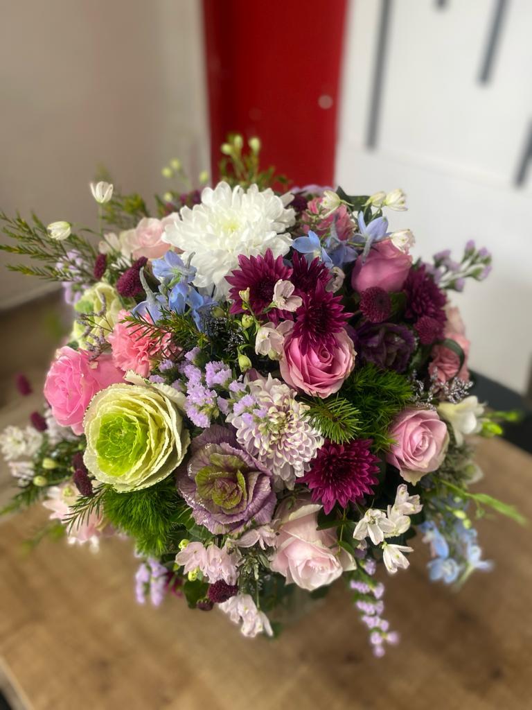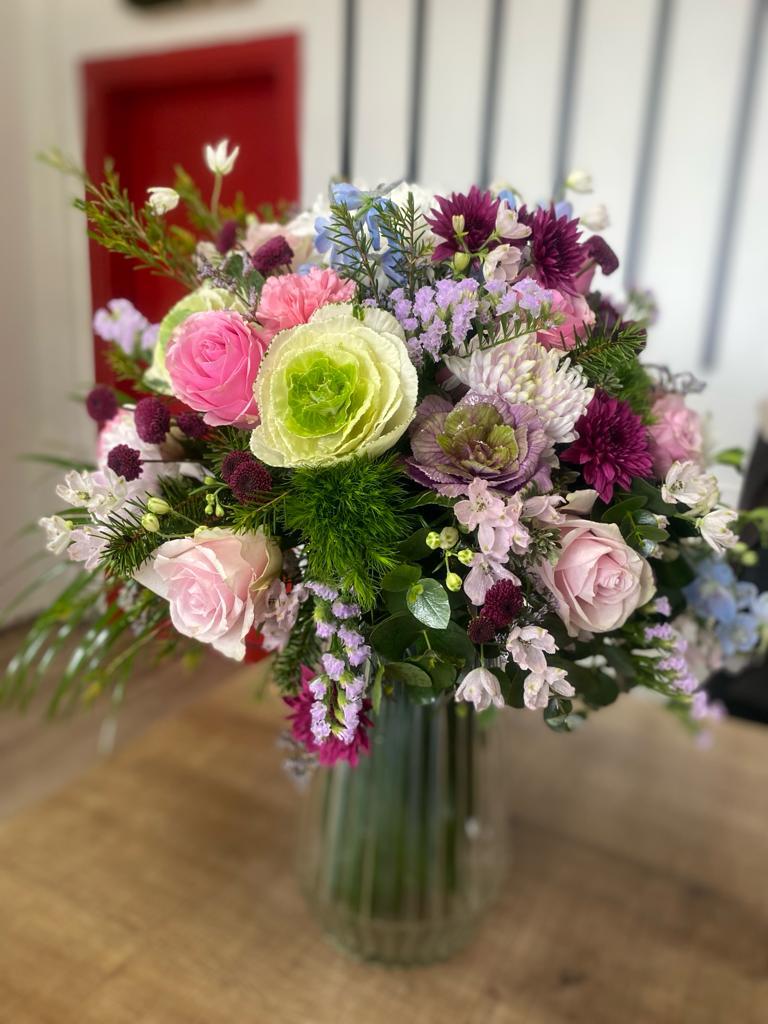 Kesme Cam Vazoda Karışık Çiçekler